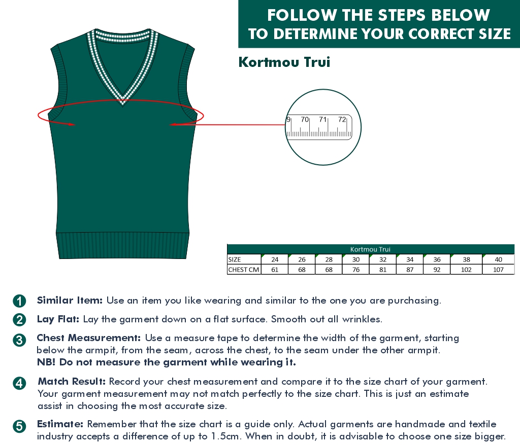 Raadpleeg die groottegids hieronder vir akkurate groottebepaling.